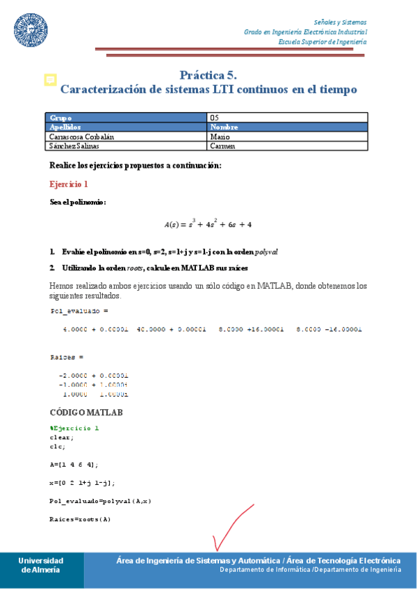 El documento se ha originado usando latex, de ahi su alta calidad tipografica ;) En el ultimo anexo del informe esta el codigo de maltab