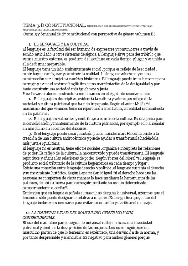 TEMA 1 CONSTITUCIONAL BÁSICO: LA SUPUESTA NEUTRALIDAD DEL LENGUAJE CONSTITUCIONAL Y LAS NUEVAS PROPUESTAS DE LENGUAJE CONSTITUCIONAL INCLUSIVO.