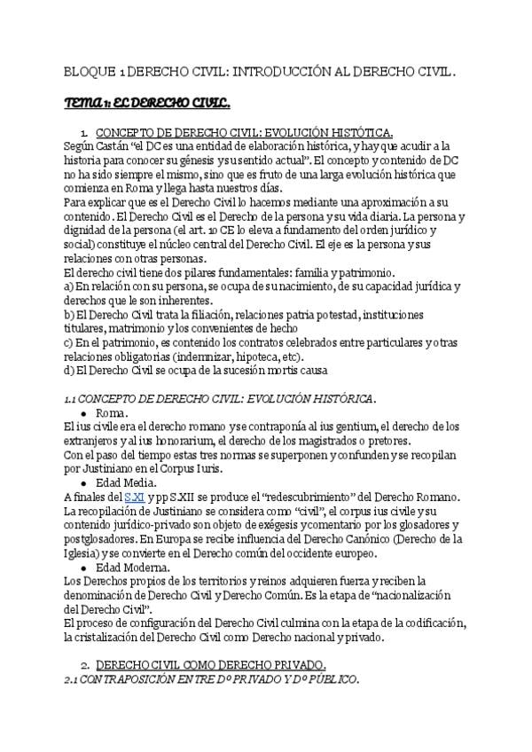 BLOQUE 1 COMPLETO DE DERECHO CIVIL. PRIMER PARCIAL.