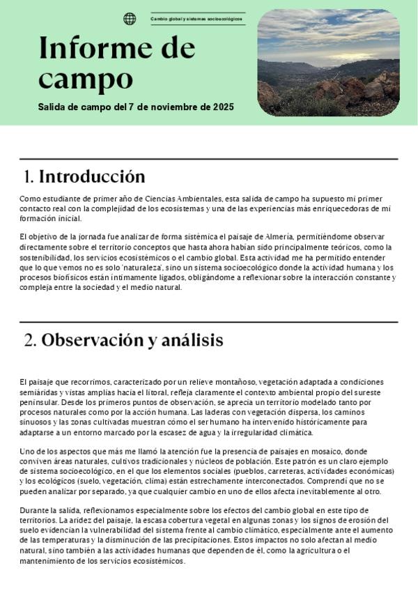 He publicado nuevos practicas de 1º Cambio Global y Sistemas Socioecológicos: Imforme-salida-de-campo.pdf