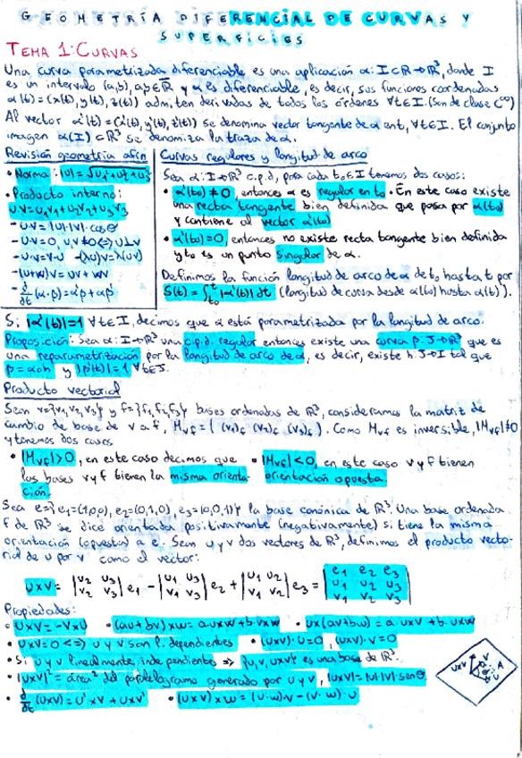 He publicado nuevos apuntes de 3º Geometría Diferencial de Curvas y Superficies: Apuntes-geometria-diferencial.pdf