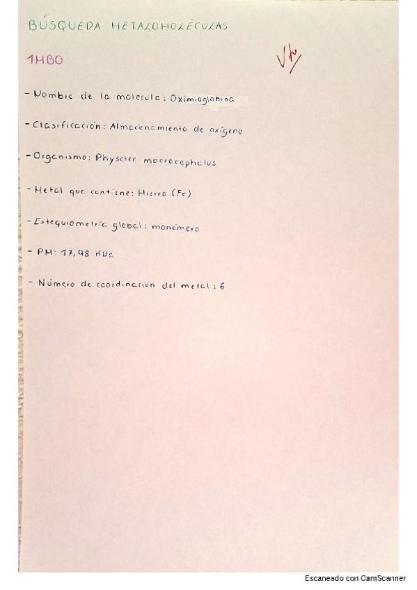 He publicado nuevos ejercicios de 4º Química Bioinorgánica y Organometálica: BUSQUEDA-METALOBIOMOLECULAS.pdf