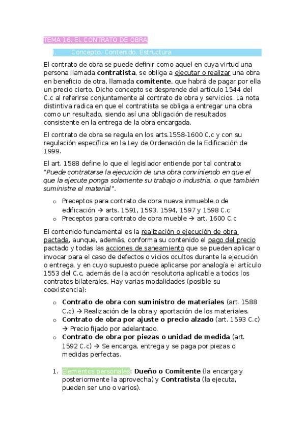 He publicado nuevos apuntes de 2º Derecho de Obligaciones y Contratos: Tema-XVI.-El-contrato-de-obra.docx