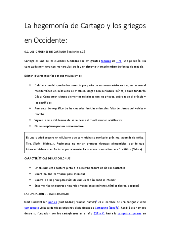 He publicado nuevos apuntes de 1º Historia del Mundo Clásico: 6. La hegemonía de Cartago y los Griegos en Occidente.pdf