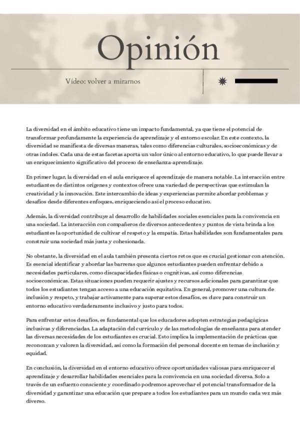 He publicado nuevos apuntes de 2º Bases psicopedagógicas para la inclusión de los alumnos con NEE: OPINION-VIDEO-VOLVER-A-VERNOS.pdf
