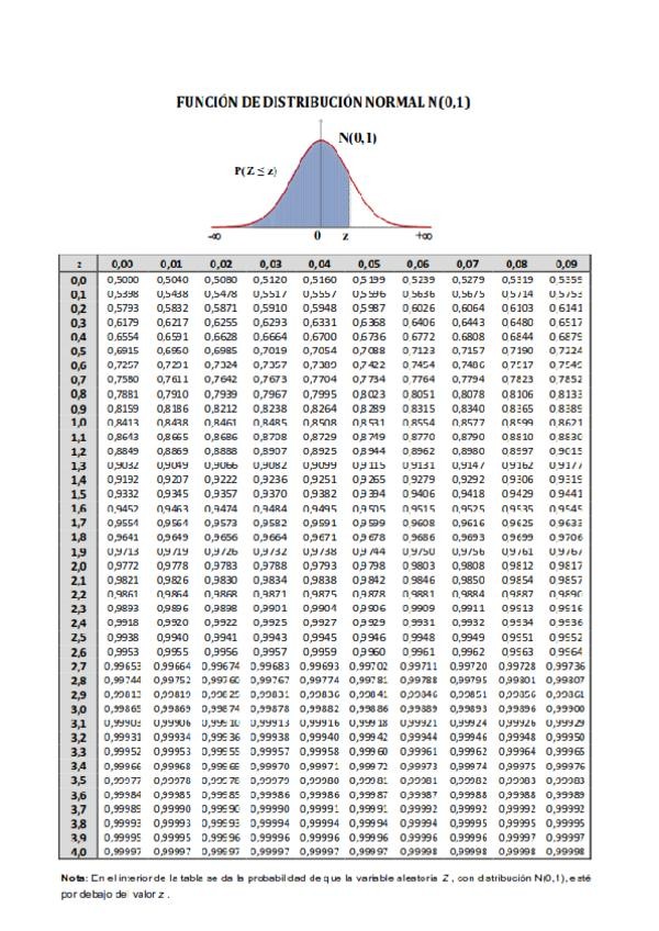 Formulario del primer parcial. Estadística y probabilidad, con la tabla de la normal