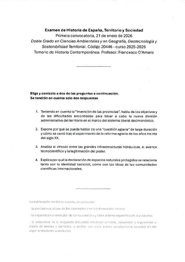 Examen de la parte de Historia Contemporánea del 21 de enero de 2026