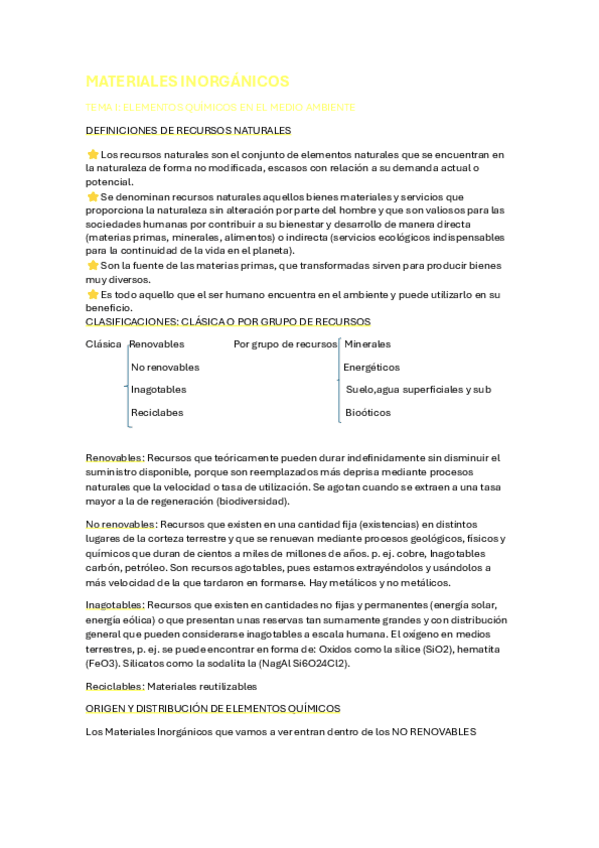 He publicado nuevos apuntes de 4º Materiales Inorgánicos Industriales y Agrícolas: Recursos Naturales, Ciclos de Vida y Problemas Medioambientales: Materiales
