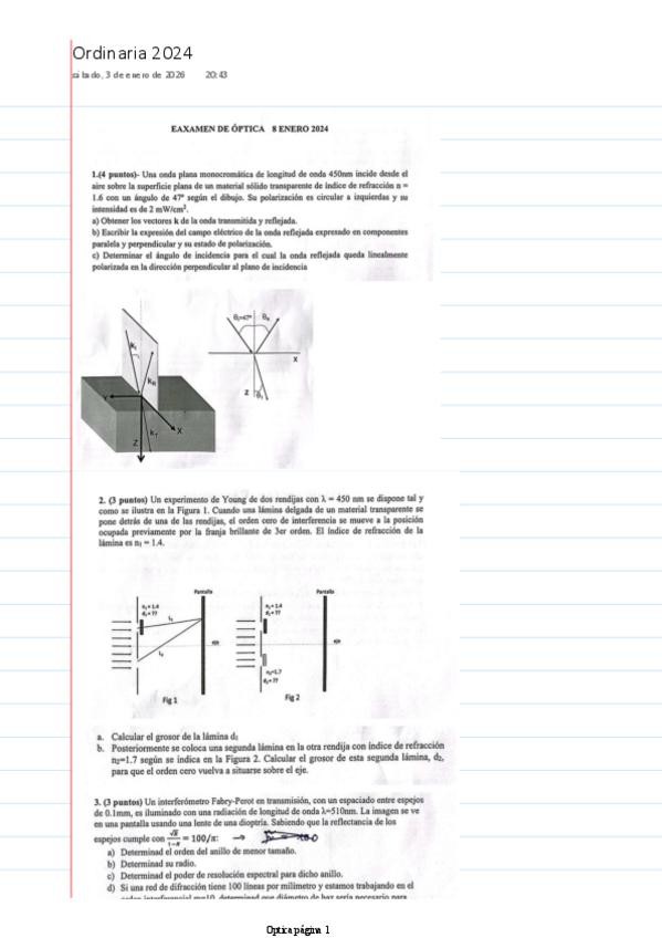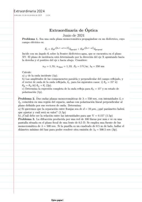 He publicado nuevos apuntes de 3º Óptica: Examenes resueltos