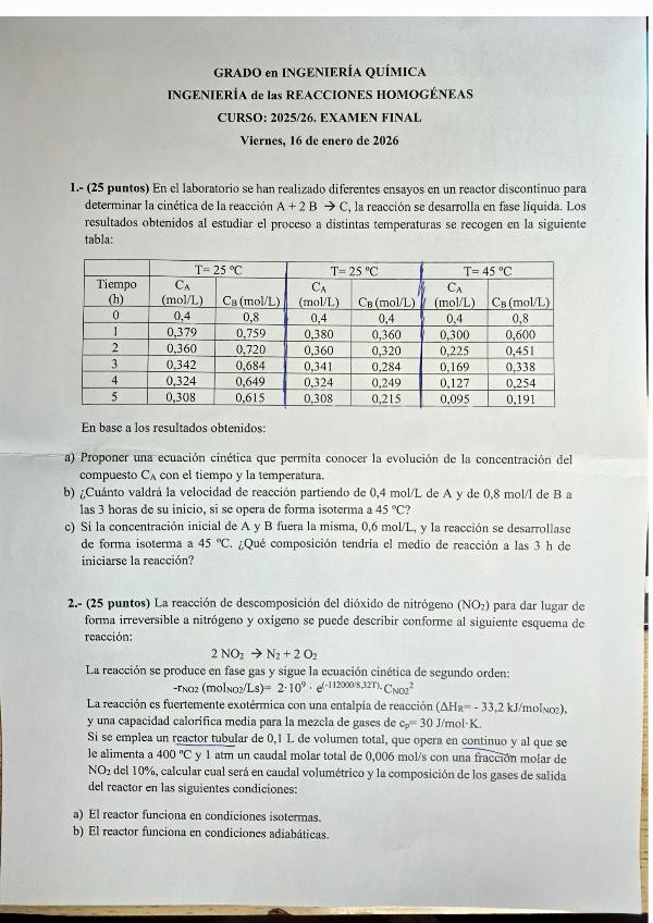 He publicado nuevos examenes de 3º Ingeniería de las Reacciones Homogéneas: Ordinaria-2026.pdf