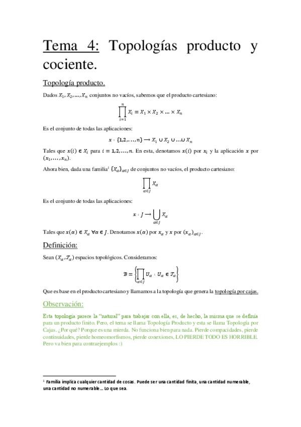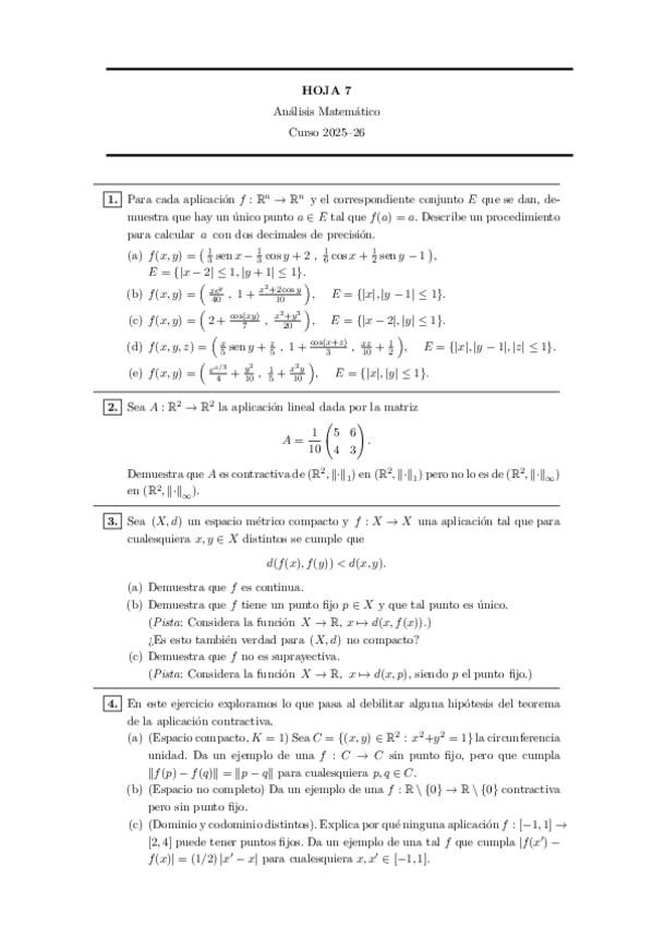 Soluciones completas de las hojas de ejercicios del curso 25-26 ERRORES: Hoja 1 ejercicio 5: en la propiedad 1 de topología, es φ(M U Ui) = φ(Ui) que es abierto, no la intersección