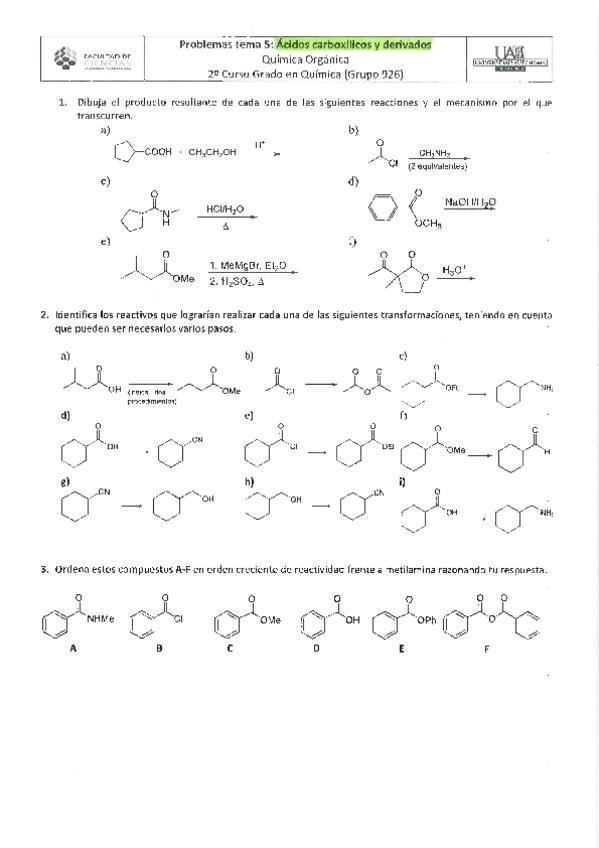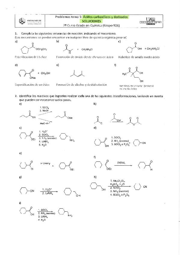 Soluciones problemas tema 5. Ácidos carboxílicos y derivados