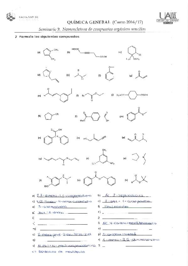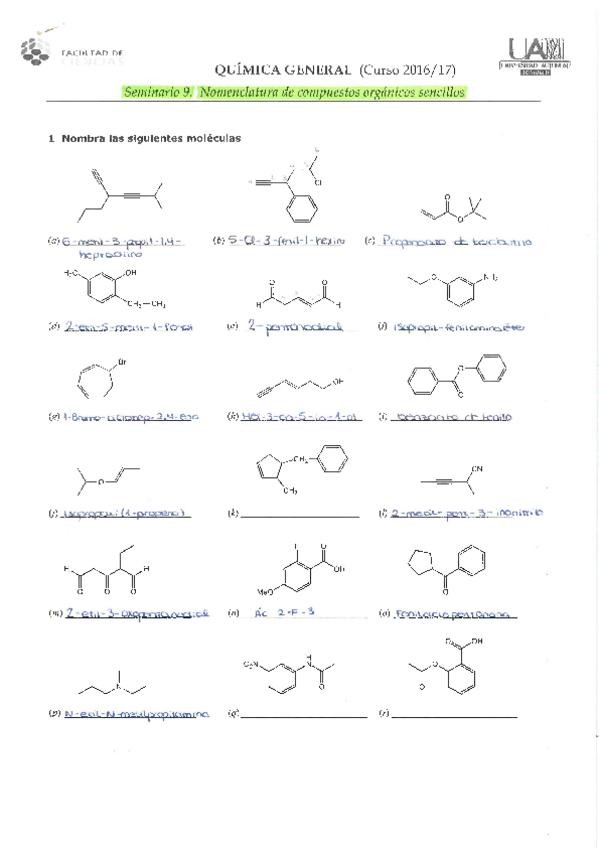 Seminario 9. Nomenclatura de compuestos orgánicos sencillos