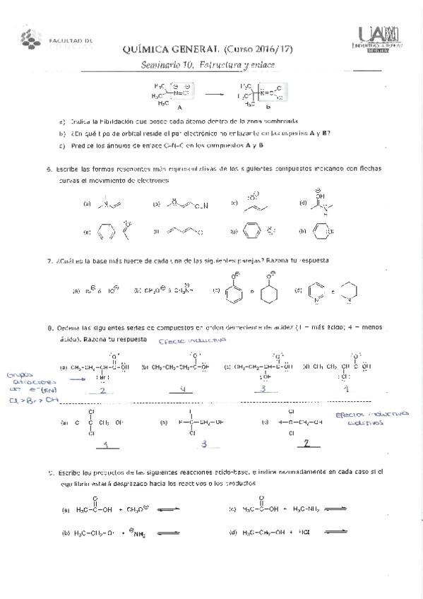 Seminario 11. Relación estructura-acidez y estereoquímica