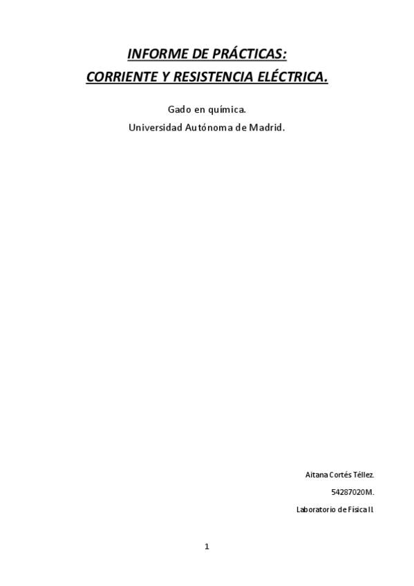 Informe de corriente y resistencia eléctrica completo.
