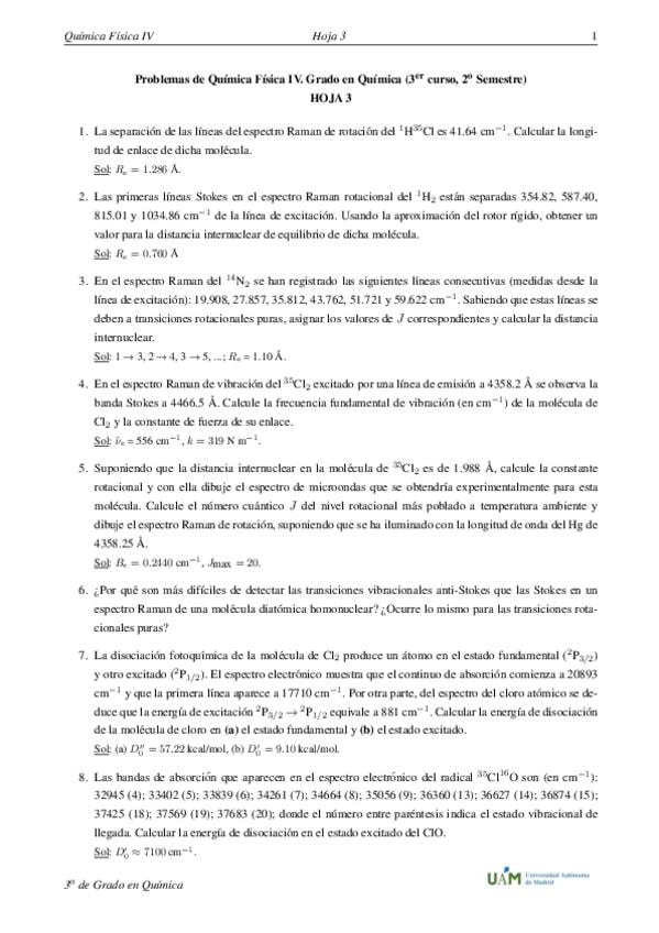 He publicado nuevos ejercicios de 3º Química Física IV: SEMINARIOS