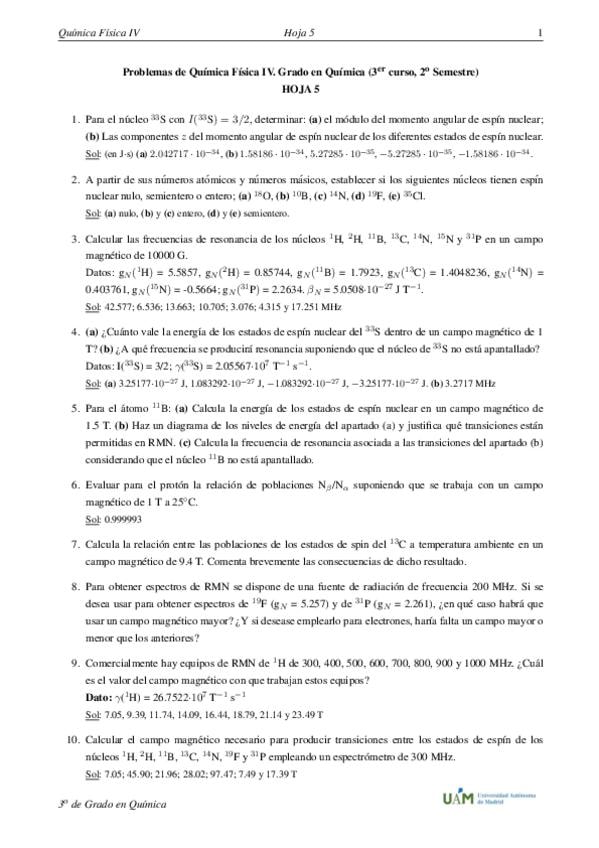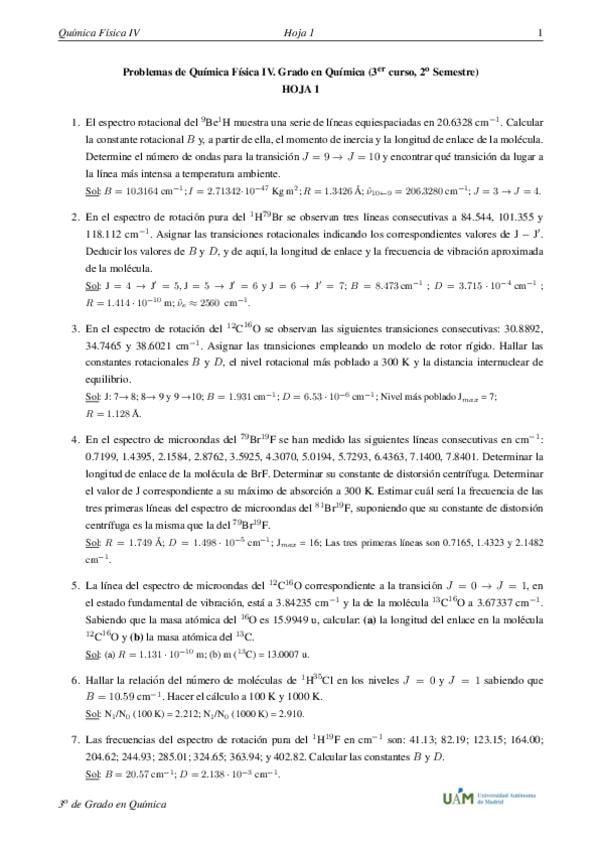 He publicado nuevos ejercicios de 2º Química Física I: Seminarios Química Física I Inglés