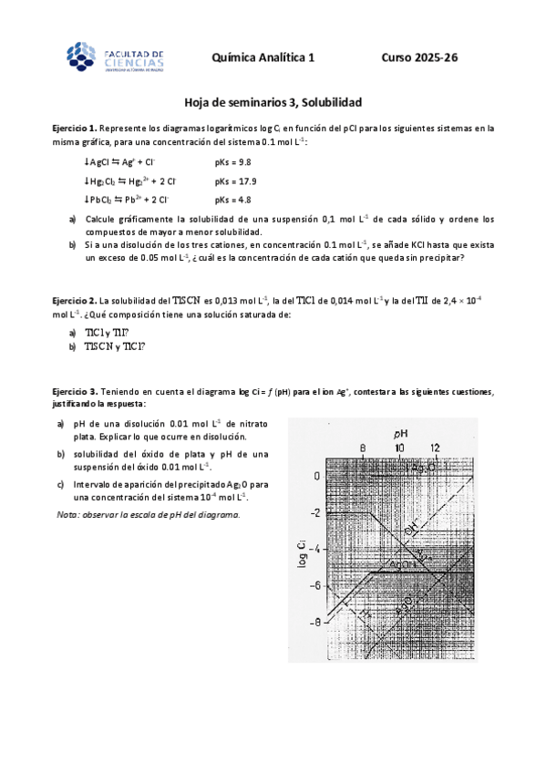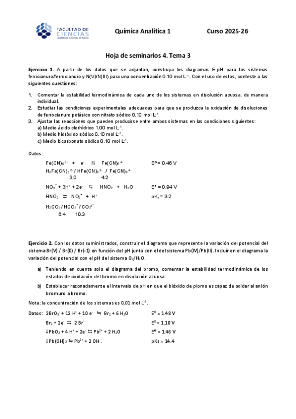 He publicado nuevos ejercicios de 2º Química Analítica I: Seminarios corregidos