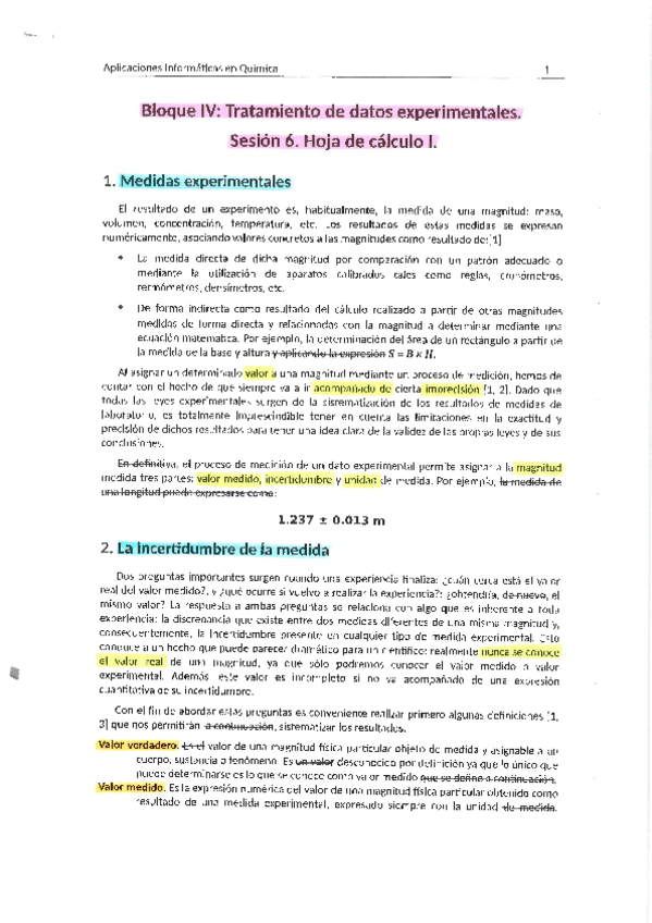 Bloque IV. Tratamiento de datos experimentales. Sesión 6. Hoja de cálculo I