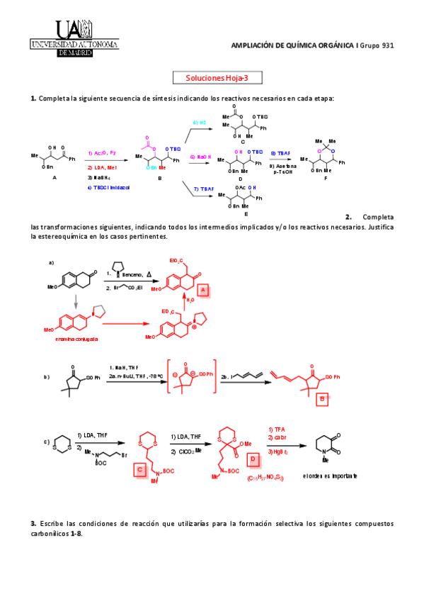 He publicado nuevos ejercicios de 3º Ampliación de Química Orgánica I: Seminario