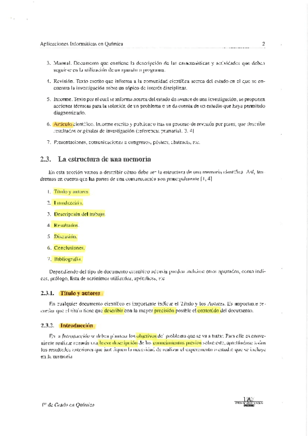 Sesión 2. Redacción y presentación de documentos científicos en química