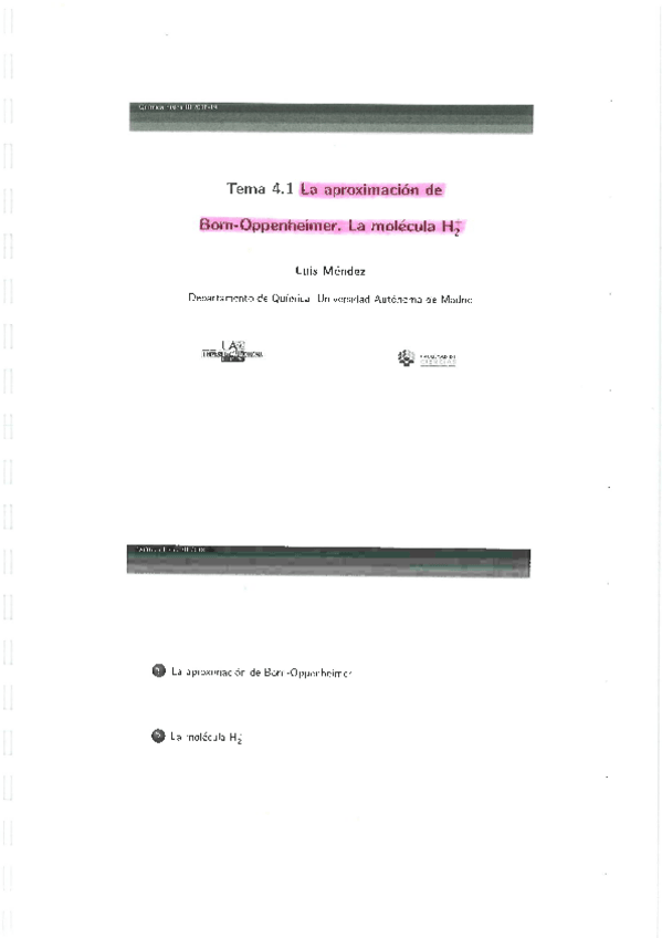 Tema 4.1. La aproximación de Born-Oppenheimer. La molécula H2
