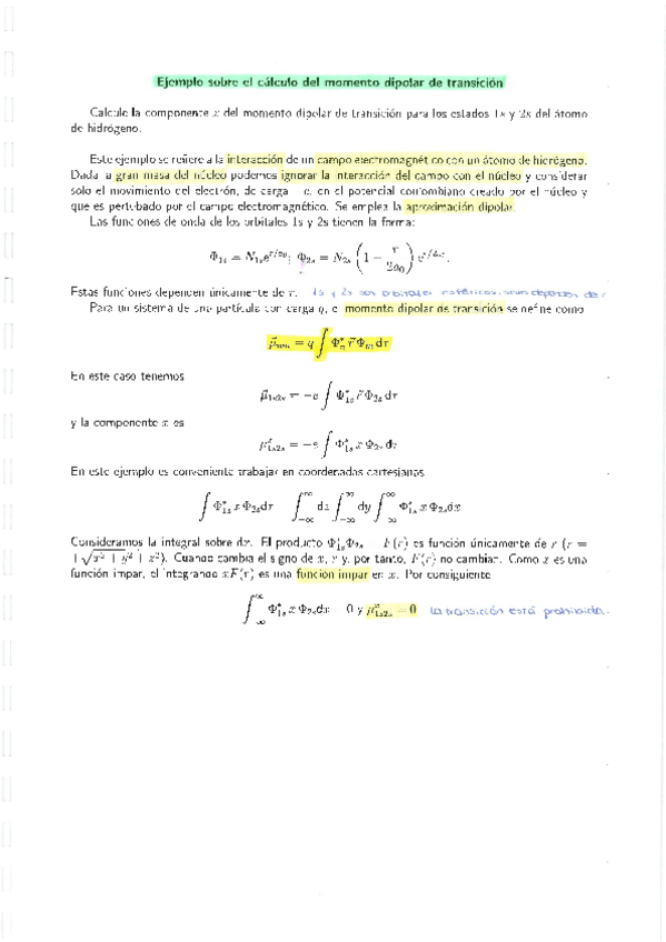 Ejemplo momento dipolar de transición