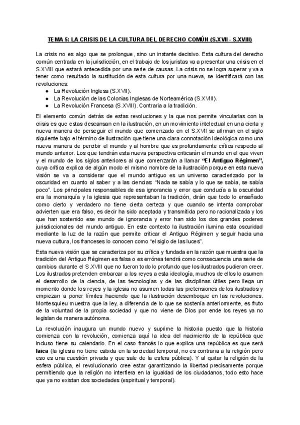 Apuntes tema 5 historia del derecho clase magistral. ES EL ÚLTIMO TEMA.