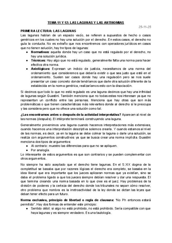 apuntes clase magistral lecturas 11 y 12 de las lagunas y las antinomias.