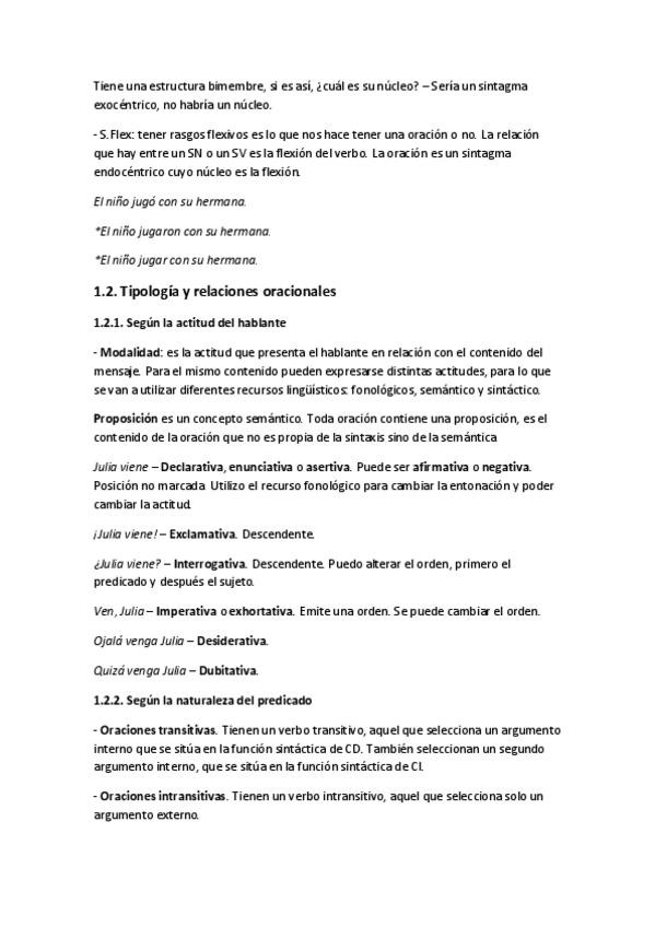 Apuntes completos y ejemplos. Tema 6: Oraciones: Estructura, Tipología y Relaciones oracionales