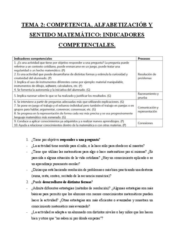 Competencia, alfabetización y sentido matemático: indicadores competenciales.
