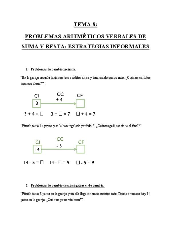 Problemas aritméticos verbales de suma y resta: estrategias informales.