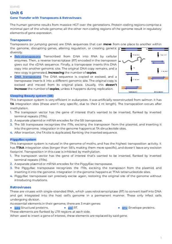 He publicado nuevos apuntes de 1º La Modificación Genética: Estrategias y Aplicaciones: Unit-6-Gene-Transfer-with-Transposons-and-Retroviruses.pdf