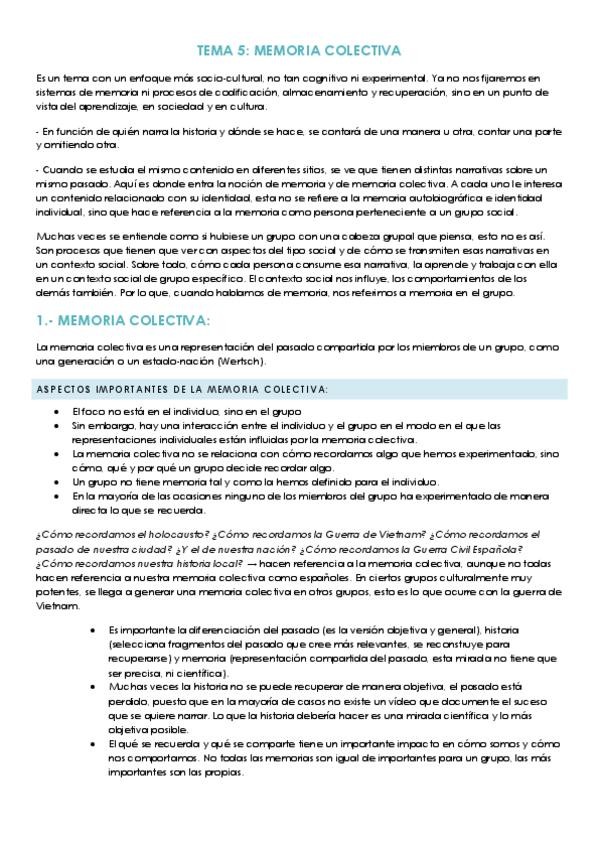 Apuntes Tema 5 - Bloque 1 Introducción a la Psicología II