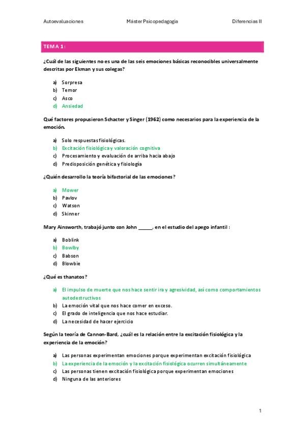 He publicado nuevos apuntes de 1º Diferencias Individuales y Aprendizaje Ii: Motivación y Emoción: autoevaluaciones.pdf