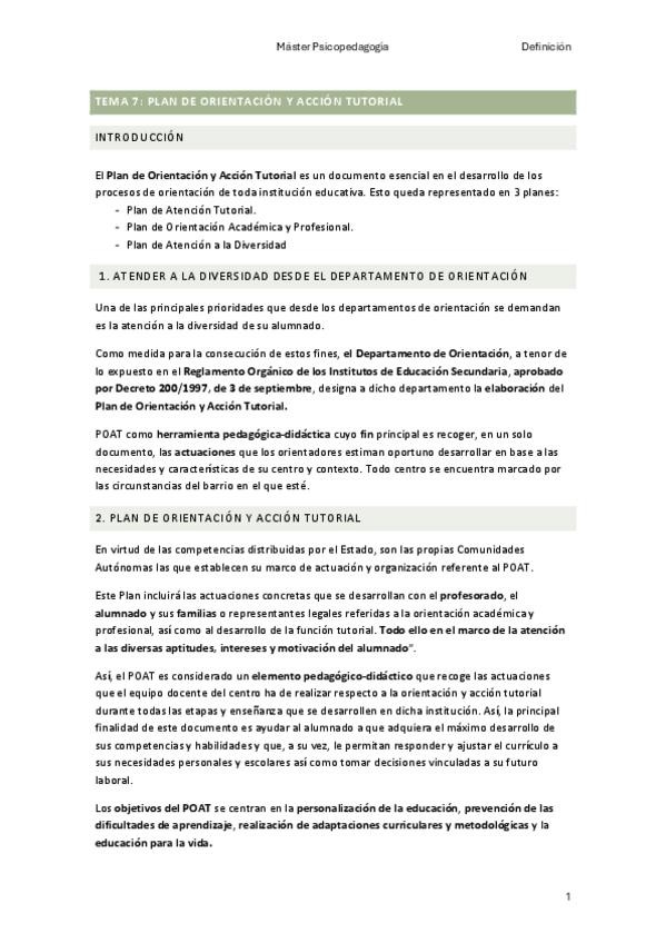 He publicado nuevos apuntes de 1º Definición, Campos y Proceso Histórico de la Psicopedagogía y la Orientación: tema-7.pdf