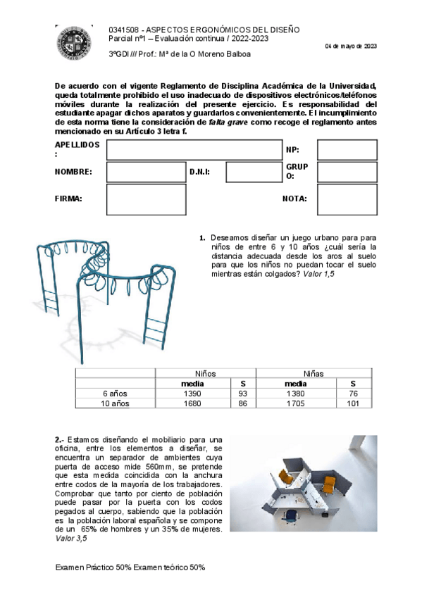 He publicado nuevos examenes de 3º Aspectos Ergónomicos del Diseño: 1er Parcial (Problemas) 2022-23.pdf