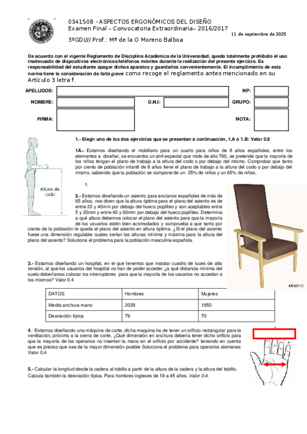 He publicado nuevos examenes de 3º Aspectos Ergónomicos del Diseño: Examen Julio (Problemas) 2016-2017.doc