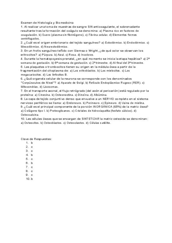 Ejercicios tejido conjuntivo con respuesta, histología general, biomedicina