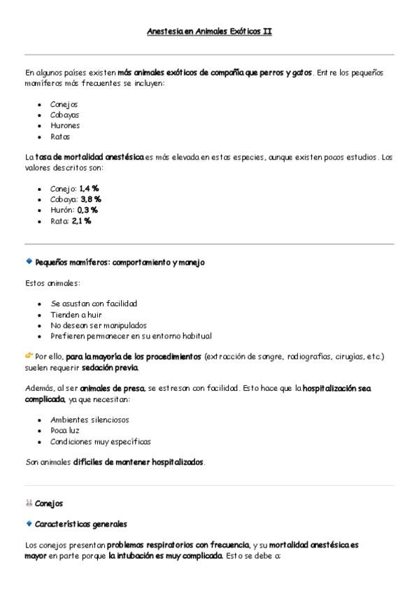 He publicado nuevos apuntes de 4º Anestesiología: Anestesia de otras especies