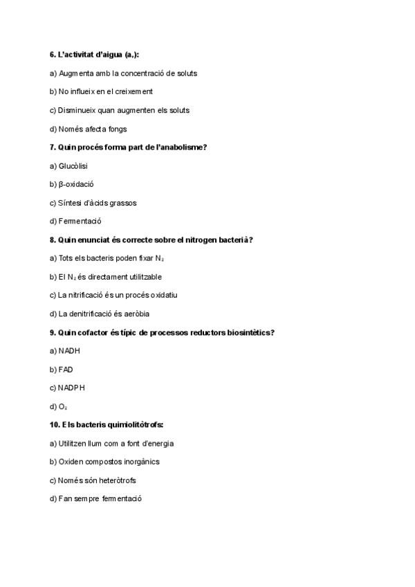 Qüestionari bioquimica met: metabolisme nitrogenat