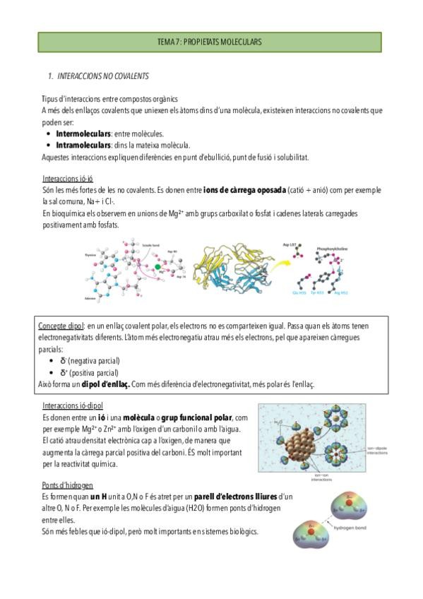 Resum interaccions no covalents, la seva relació amb propietats físiques i químiques i Àcid-base