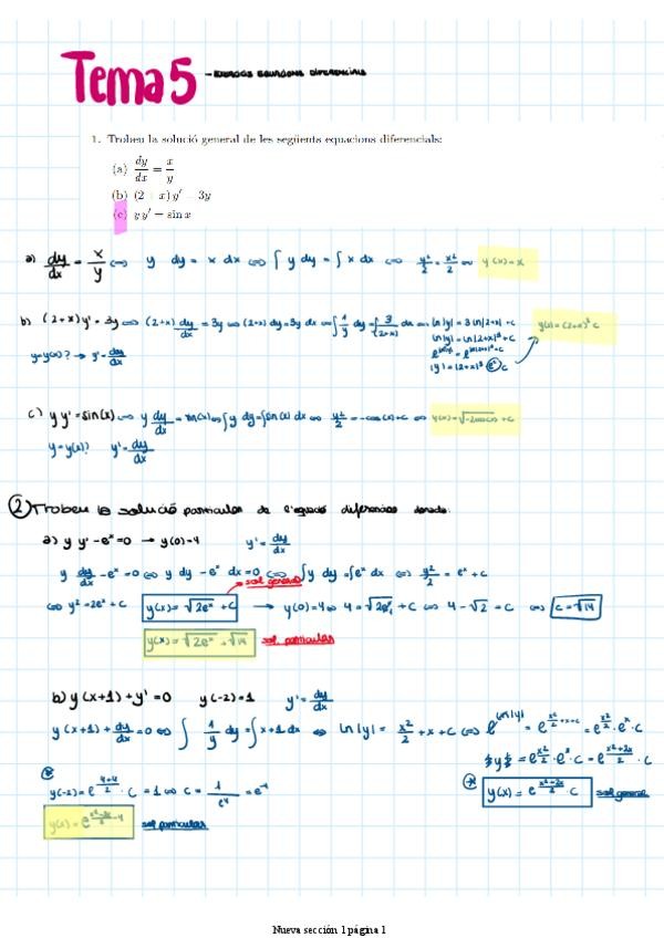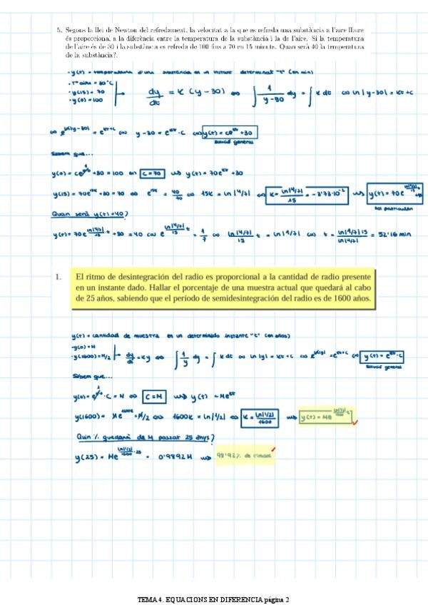 Exercicis equacions diferencials i problemes aplicats resolts.