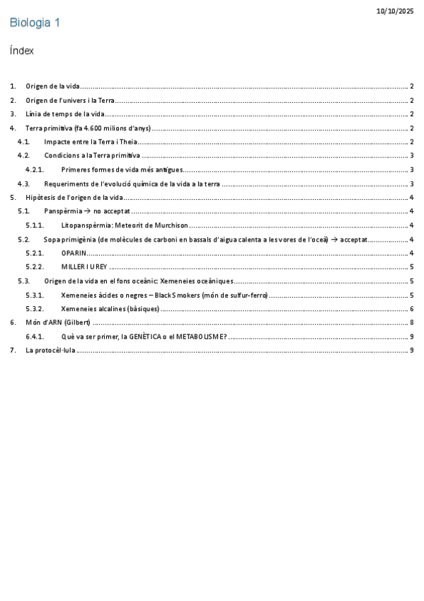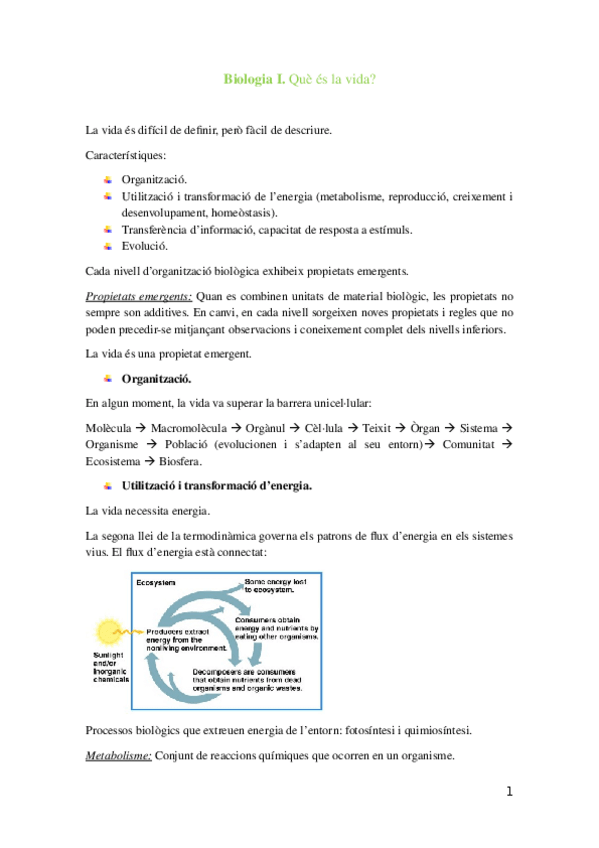 Apunts complerts dels temes 1 al 4 de Biologia 1. Preparats per estudiar de cara al Parcial 1.