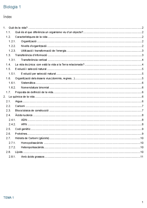 Resume tema 2 de biologia I, pel parcial i pel final. 1r any biotecnologia.