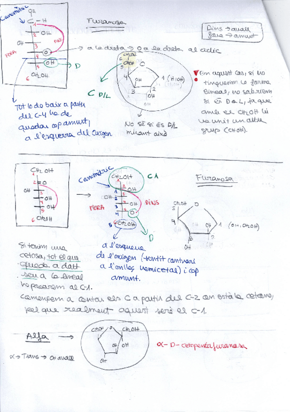 Exericis fets a classe de monosacàrids (obrir-los i tancar-los) amb explicacions de com fer-ho