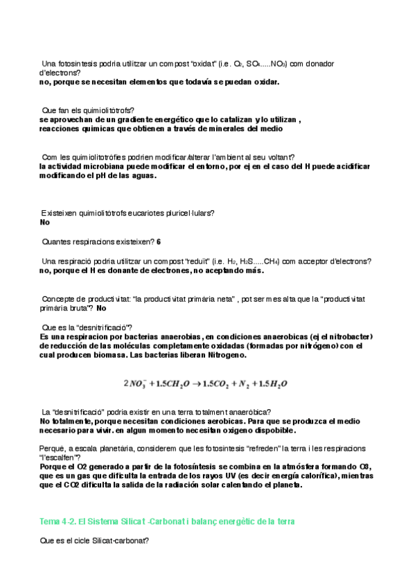 Cuestionario Resuelto Temas 4 ( II Parcial ) .Tema 4TEMA 4. INTERCONNEXIÓ ENTRE LA BIOSFERA I LA GEOSFERA Tema 4.1. :La matèria en moviment Archivo Tema 4.2: cicle silicat-carbonat + Balanc energeti de la Terra Archivo Tema 4.3: cicle del carboni glo