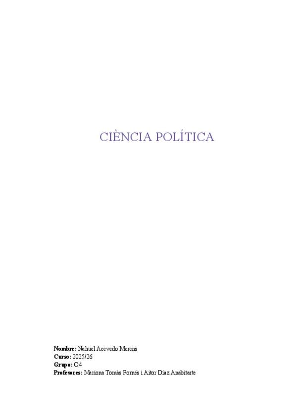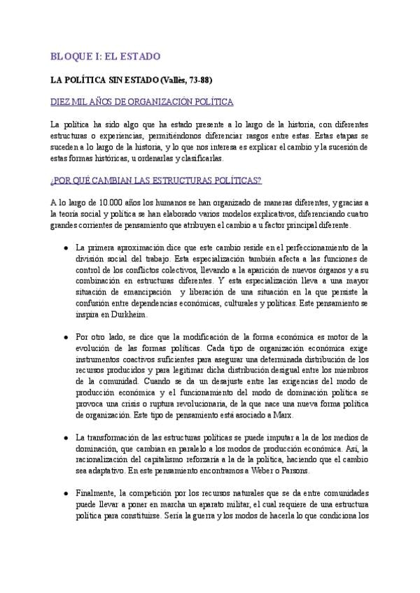Resumen del bloque 1 de Ciencia Política, con páginas y manuales de referencia.