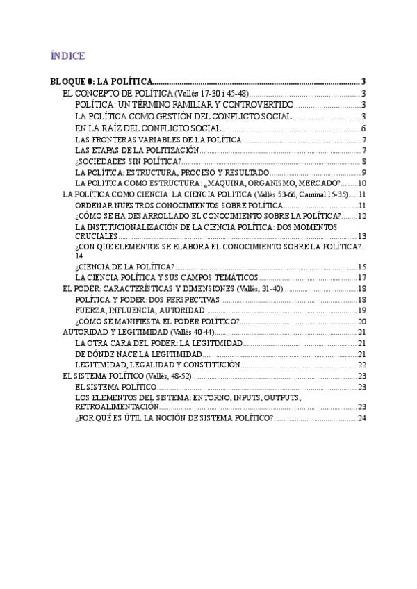 Resumen del bloque 0 de Ciencia Política, con páginas y manuales de referencia.