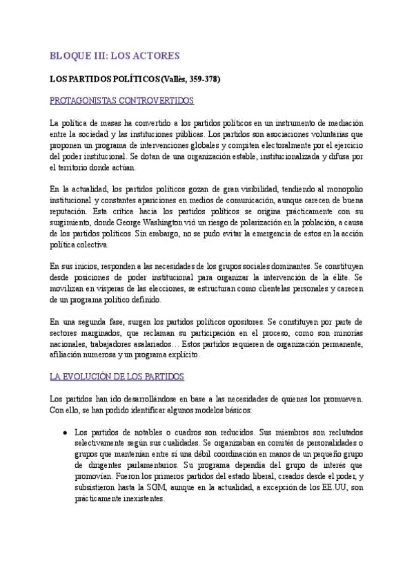 Resumen del bloque 3 de Ciencia Política, con páginas y manuales de referencia.